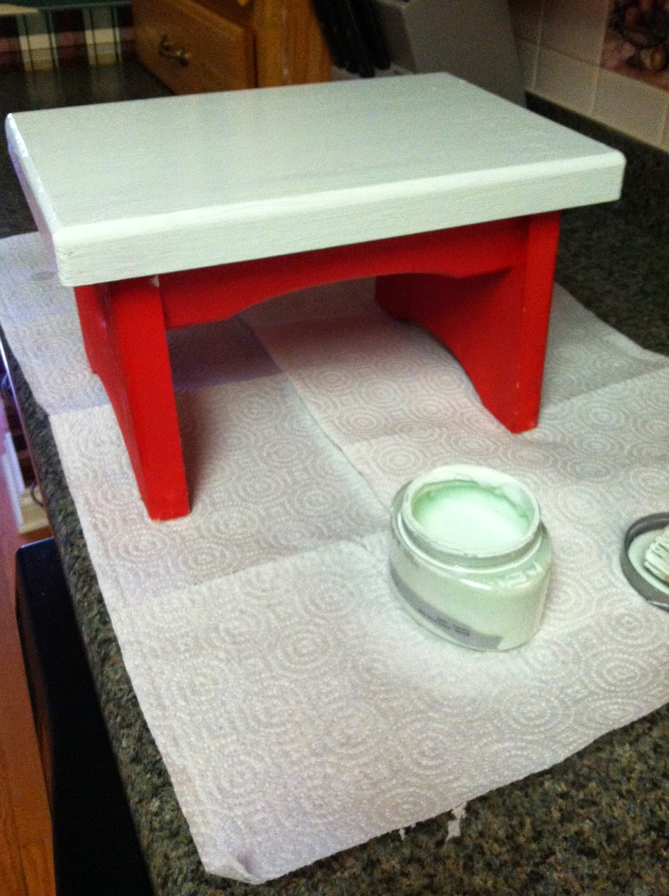 If you’ve been around for awhile you know that Mike and I are in the middle of renovating our bathroom. We started with removing lots of wallpaper, fixing damaged walls and replacing the floors. This Wednesday our vanity top will be installed… so we are finally at the point where I can tackle some of the fun projects – like this little stool!