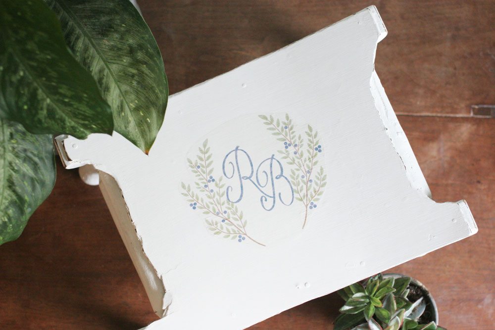 Once the paint is dry, begin distressing. Rub sandpaper along the corners and edges, revealing the wood underneath the paint. It will take a bit of elbow grease, but you’ll stay motivated when you see that pretty raw wood start to appear.