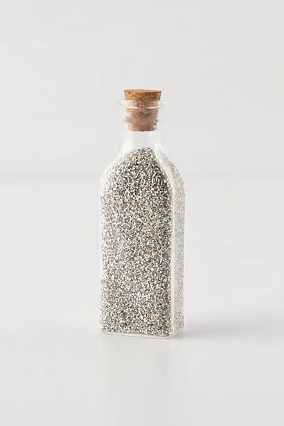While browsing through Anthropologie, I discovered some cute holiday decorations. I really liked this one (shown below) but felt that $10 for a simple vase filled with glitter was more than I wanted to pay. I then decided that this was a simple product that could easily be made into a cheap DIY project. Below are the steps for my Anthropologie Holiday Knock-Off that I made for a total of $3.80!