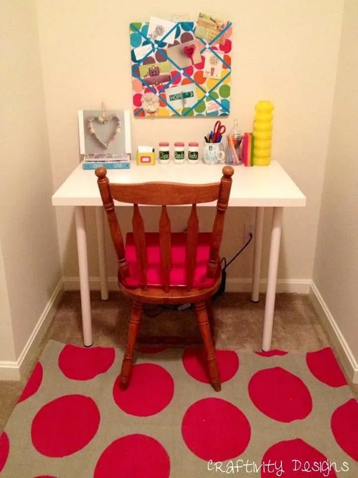 In my office at work, I have a yellow fabric memo board that I made myself using a cork board, fabric, and thumbtacks. Go here to view the tutorial.